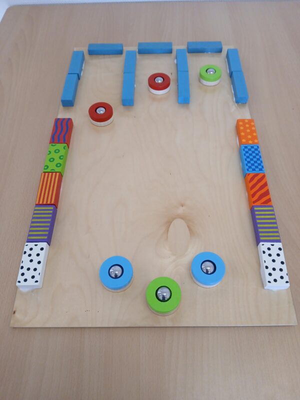 Benodigdheden: grote bouwblokken, lege snoepblikjes, vilt voor de onderkant en neon ductape. Werkwijze: sjoelspel. De snoepblikjes zijn een stuk grote als de normale sjoelstenen dit zorgt voor een betere grip bij het sjoelen. Meerdere spellen aanbieden in dit thema zorgt… Verder lezen →